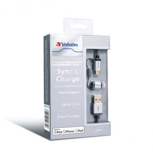 Verbatim Lightning 120cm Metallic 2-in-1 Cable - Silver