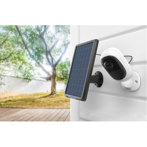 Argus 2E 支援太陽能板,太陽能板自身配合腳架可多角度轉向,配有4米Micro USB線,方便用家架設到陽光充足的地方。只需連接 Argus 2E 充電式鋰電池後的充電口,即可為 Argus 2E 提供電源。另外USB線帶有防水軟膠,在充電同時亦能為 Argus 2E 提供防水絕緣的功能。