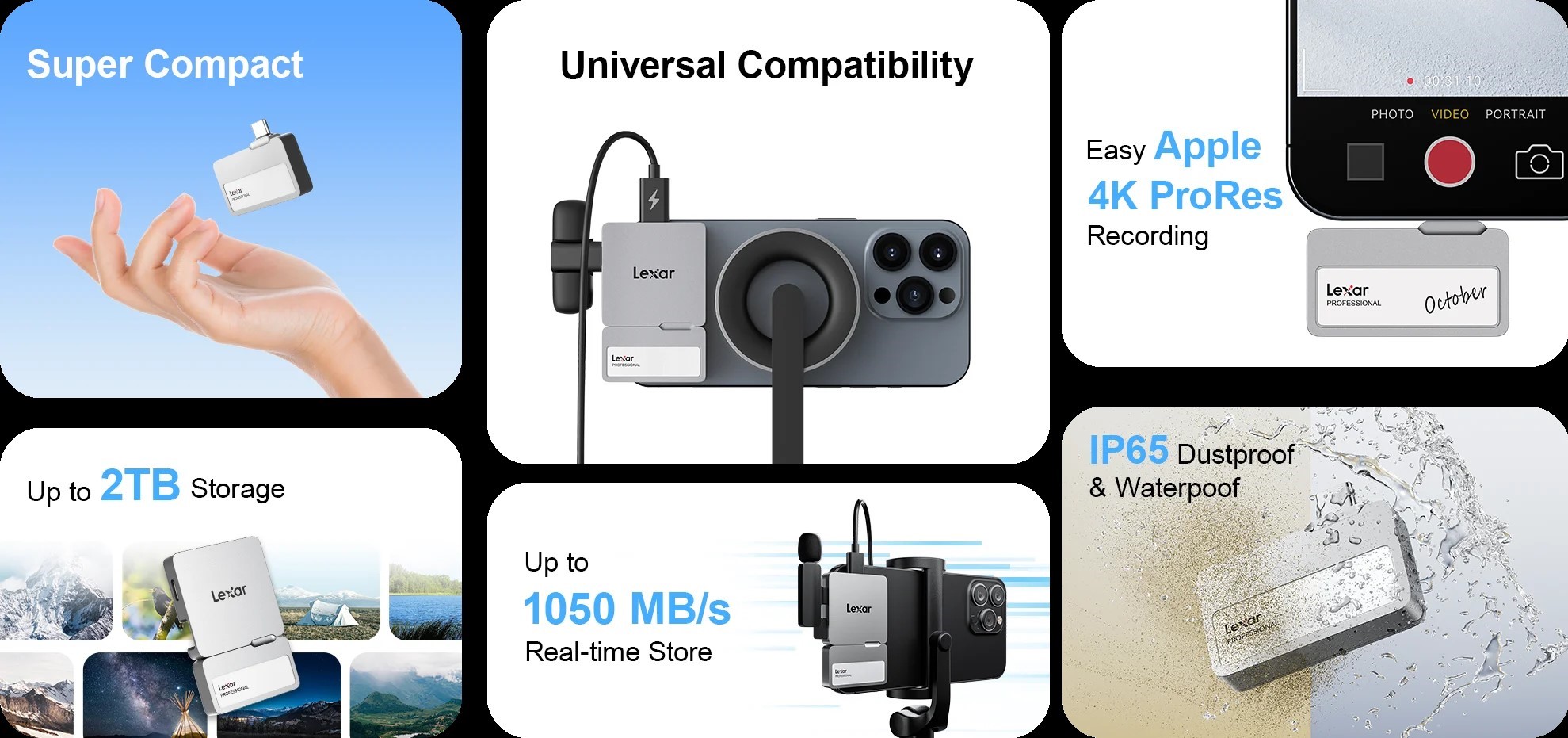讀取速度高達 1050MB/秒,寫入速度高達 1000MB/秒,可實現無縫 Apple Pro Res 4K 60 fps 錄製、無丟幀和快速備份