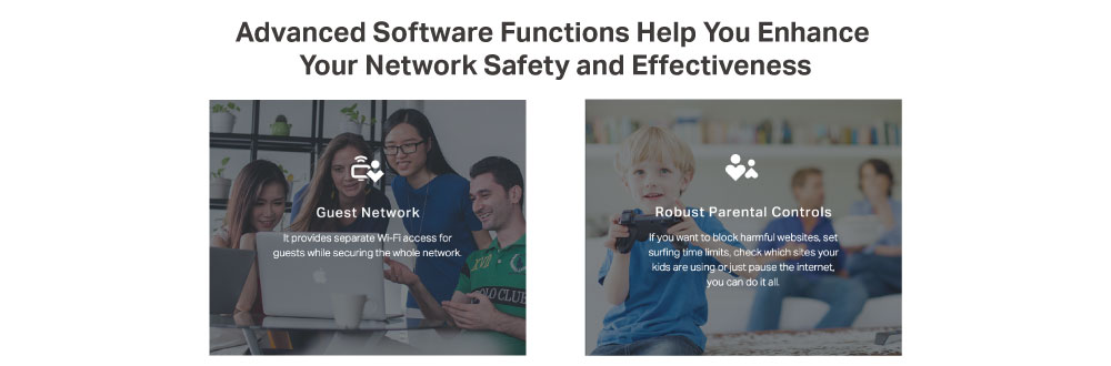 MR100特別加入Guest Network (客人網絡),將給訪客使用的無線網絡設定為僅可瀏覽網頁及無線打印,