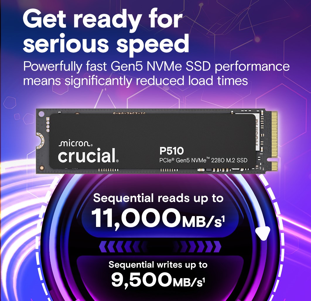 Crucial P510 2TB PCIe Gen5 NVMe M.2 SSD