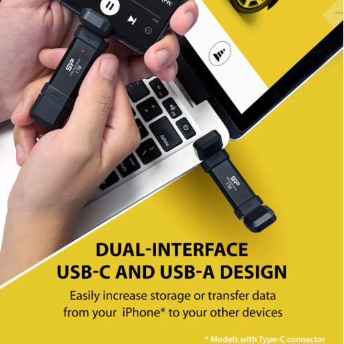 - 2-in-1 portable SSD with reversible USB Type-C and traditional USB Type-A connector