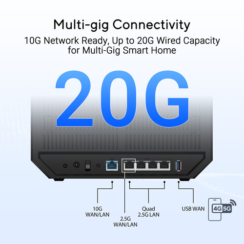 多功能 WAN 組態選項 - 透過 AI WAN 偵測及支援 4G LTE 和 5G 行動裝置熱點分享的便捷 USB 連接埠,建立隨時在線的網路。