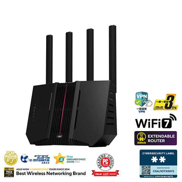AI WAN 偵測、AiMesh 功能、無需訂閱的網路安全性及全方位 VPN 功能、Smart Home Master