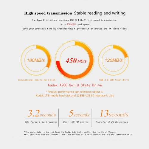 速度數據來自柯達官方網站。實際速度取決於主機設備、介面、使用條件以及設備類型。