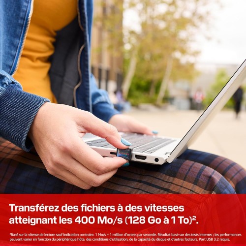 無需等待:USB 3.2 Gen 1 的性能使您的驅動器讀取速度高達 400MB/s 2 (128GB – 1TB),